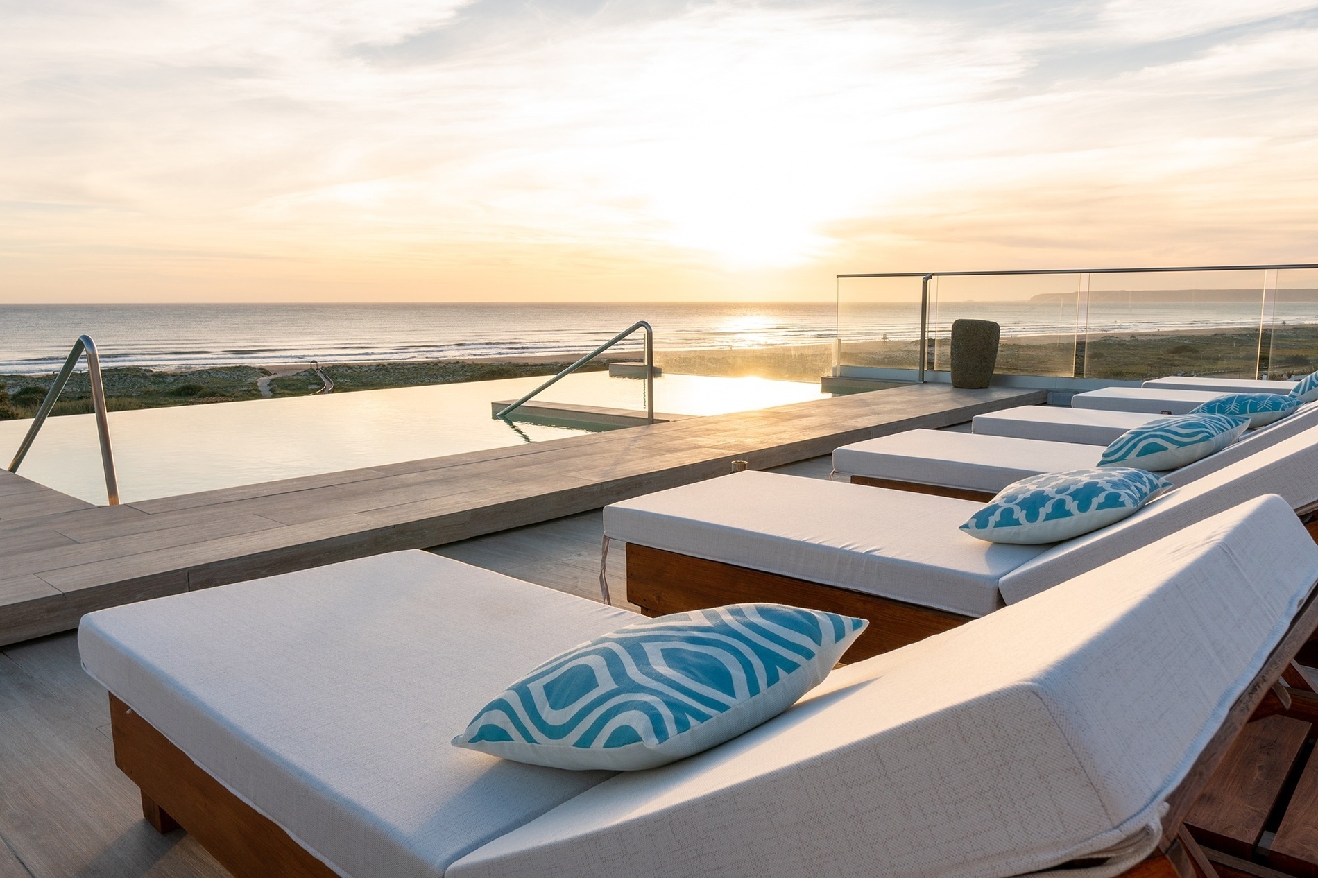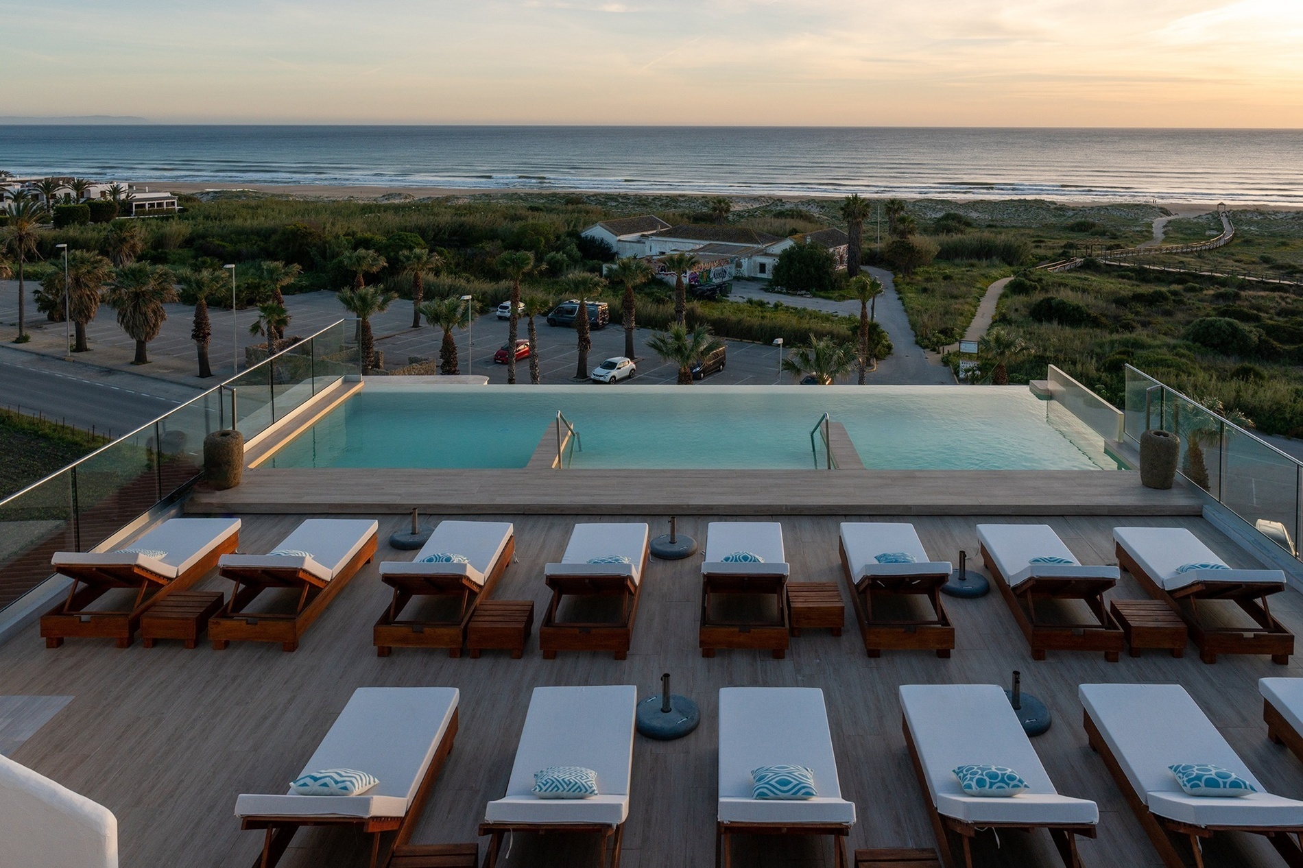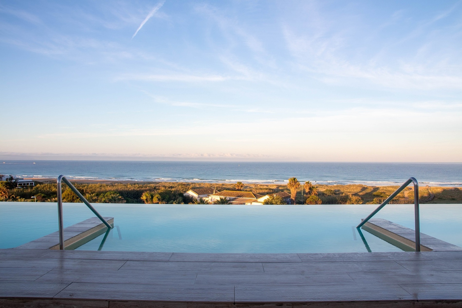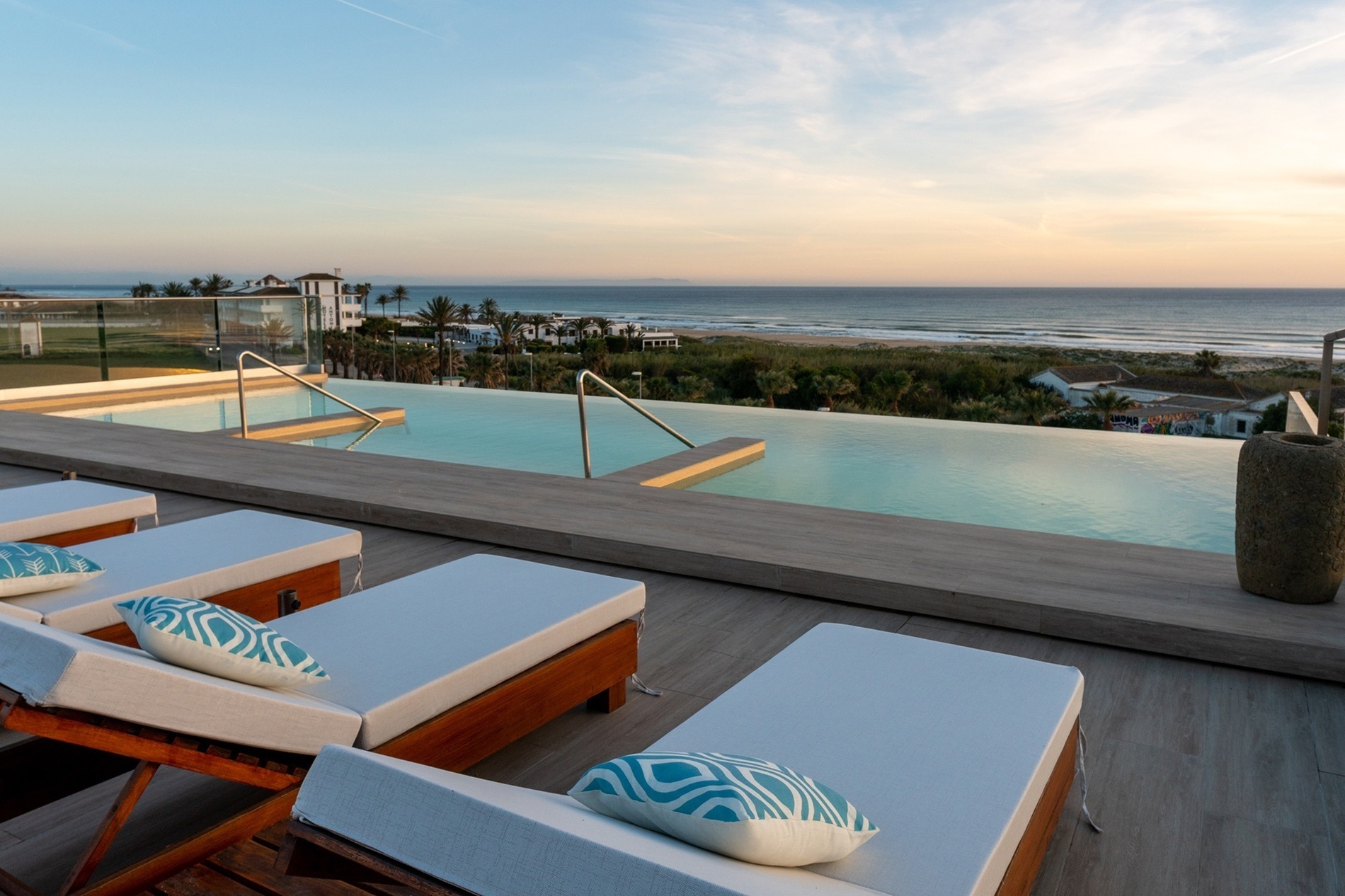 Descubre la elegancia sin límites de la Piscina Infinity del Hotel Zahara Beach, un refugio recomendado para adultos donde el Atlántico se funde con el cielo; flota en nuestra lámina de agua infinita mientras contemplas la arena dorada de Zahara de los Atunes, déjate seducir por puestas de sol gaditanas que tiñen el horizonte de rojos y naranjas, y acompaña cada instante con cócteles de autor servidos al momento por nuestros bartenders, todo ello en una terraza panorámica que combina lujo, confort y la esencia más pura del verano andaluz.